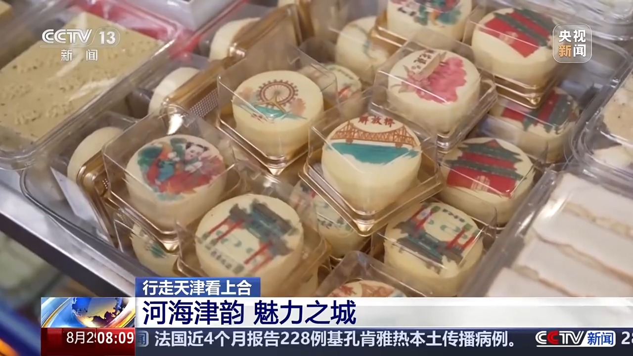 美食圈儿不仅比拼口味,也在比创意。天津众多建筑地标比如解放桥、天津之眼摩天轮的图案印上了糕点,还有年画娃娃的可爱形象。